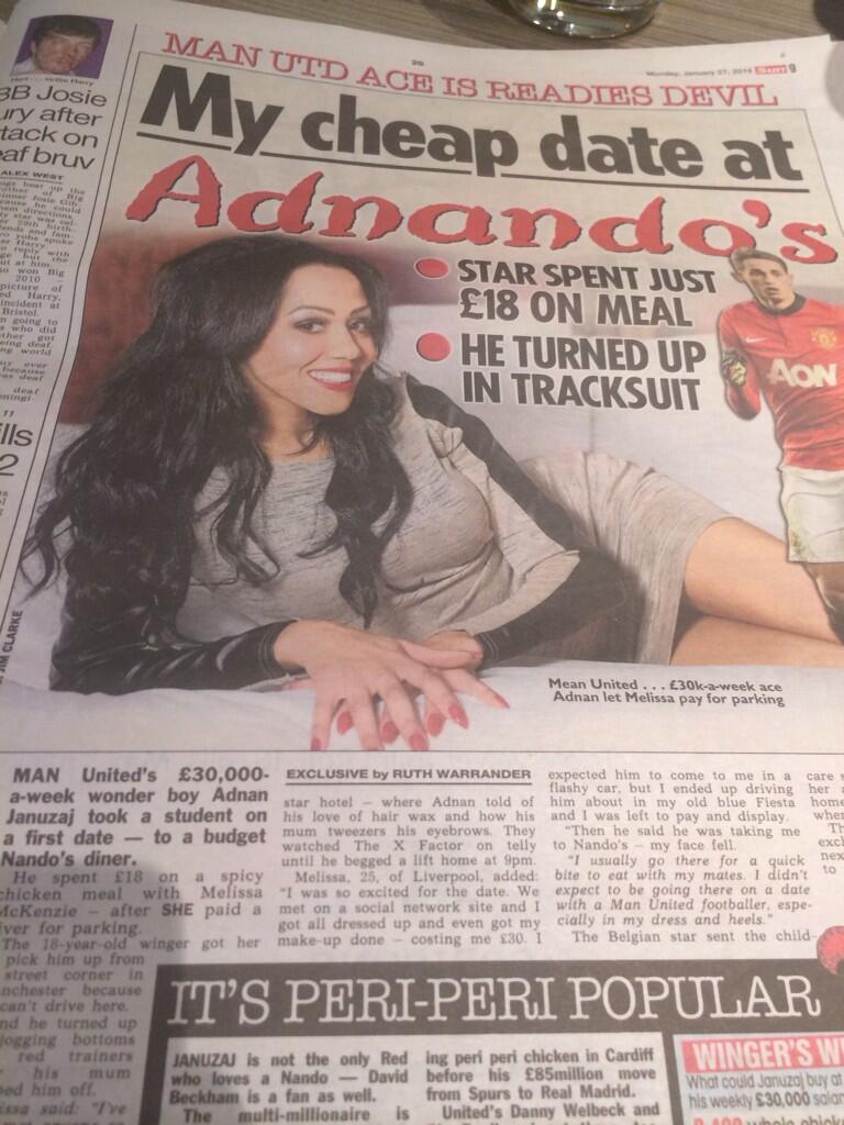 馬莉莎憶述這段痛苦的經歷:「他說,要帶我去吃Nando's,當時我立刻黑臉。那些地方是我跟同學們趕時間才去吃飯的地方,我沒想到和一名曼聯球員約會也要去那裡吃的。再者,我還是穿著裙子和高跟鞋。」